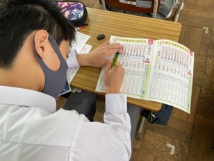 次の時間の小テストに向けて休み時間にも勉強をしている人が多いです。