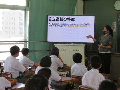 1年生は本日の6限に初めての進路学活に取り組みました。今回は公立高校と私立高校についての話がメインで下。1年生のみなさんはまだあまりピンとこないかも知れませんが,思っているよりも早くその日はやってきます。