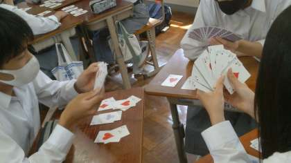 間違って捨ててしまい,ババ抜きが永遠に終わらないなどというトラブルがあった班もありましたが,それが頑張って覚えるきっかけにもなりますね!
