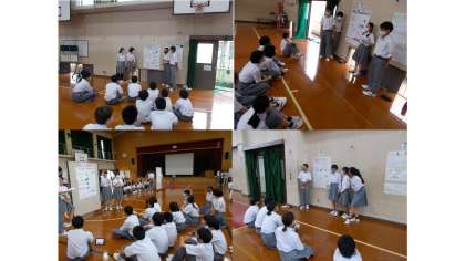 本日のカナリータイムは,3年生のポスターセッションに見学,参加させていただきました。自分たちの取り組みの参考になったのではないでしょうか。終了後はワークシートに感想等を記入し,振り返る時間も設けてくださいました。
