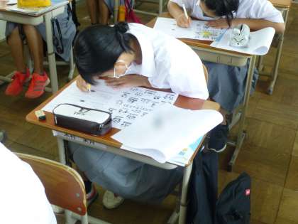 1年生と3年生は今日の4限目に,2年生は振り替えて月曜日(15回目)に行っており,二条中学校の全校生徒で取り組んでいます。