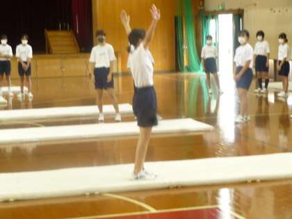 この時間,少し雨が降りましたが,男子はグランドで,女子は講堂で体育を行いました。