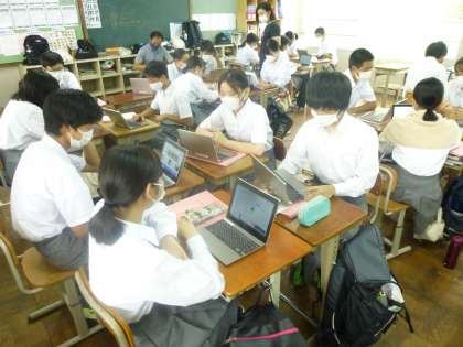 今日のカナリータイムでは,3年生はSDGsの考えを基に「未来の人も豊かな暮らしをするためには」というテーマで,意見を出し合いました。