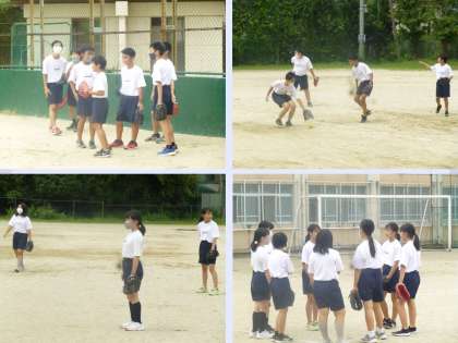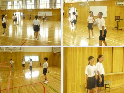 4組はバトミントン,3組はソフトボールを行っている様子です。