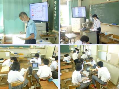今日の3時間目の様子ですが,1/3ほどの教室でタブレットが活用されていました。