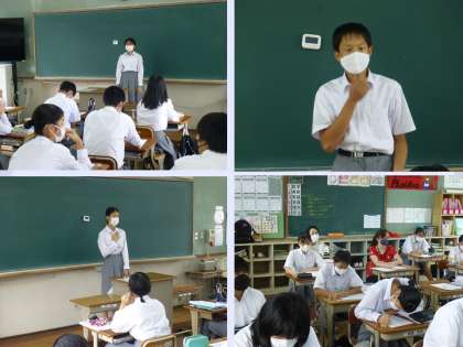 英語のスピーチ発表会が行われています。皆さん自分が考えたスピーチを暗記して臨みました。緊張をしている生徒もいましたが,皆さん上手かったですよ。