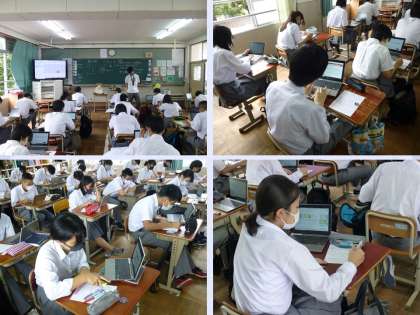 現在,タブレットが生徒1人に1台ずつ配備されているので,授業の形態が広がってきています。