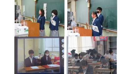 本日の午後,生徒会選挙とそれに伴う立会演説会が行われました。1年生からは4名の立候補者と2名の応援弁士が出てくれていました。緊張しながらも堂々と演説をしてくれていた姿が印象的でした。今回はリモートのため,演説や司会をする生徒以外は教室で演説を聞き,教室で投票します。