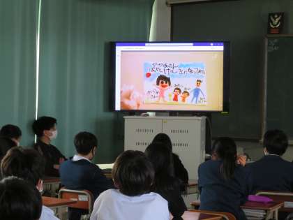 本日は5,6限を使っての人権学活を行いました。今回はドラマ「太陽を愛したひと」を視聴して,障がいがある人たちの社会参画について考えました。