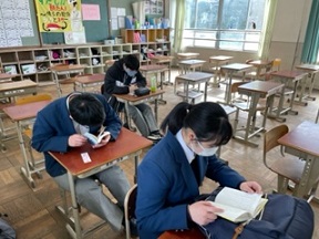 家庭科や美術科の課題に取り組んでいる人や中期入試に向けての学習に励んでいる人など,それぞれに頑張っていました。