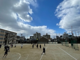 風の冷たい昼休みでしたが,晴れ渡る空の下,