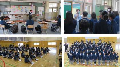 初めての学年集会では,1年生の先生方の紹介を聞きました。記念に全員写真を1枚。学活では自己紹介をしたり,校舎案内をしたりしました。充実した学校生活になりますように!