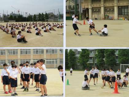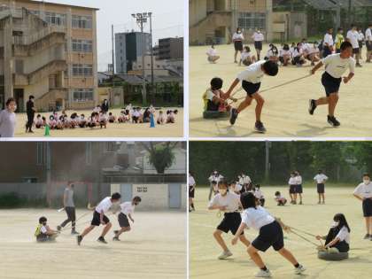 明日は学年レクリエーションで「タイヤでGO!」をします。今日はその練習です。みんな一生懸命取り組み,熱い声援もグランドに響き渡っていました。担任の先生の力をかりながら作戦も練りました。もうバッチリです。最後は,みんなで円陣を組み,明日への士気を高めました。さあ,明日はどんなドラマが生まれるのか,今から楽しみですね。