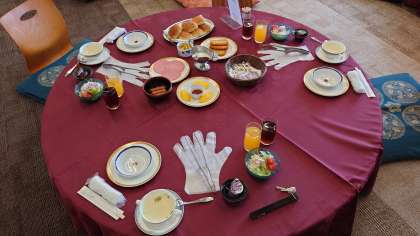 朝食が始まりました。今日は体験活動がたっぷり控えています。しっかりチャージ!