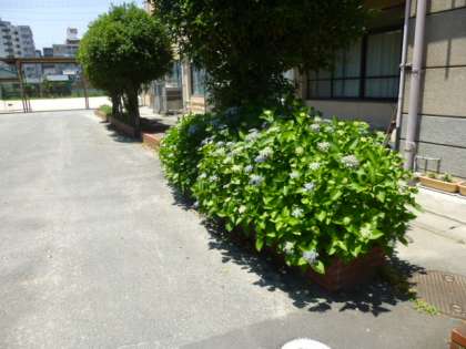 本校の校長室と体育館の間にある花壇には,毎年この季節,紫陽花が咲いてくれます。