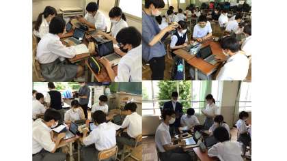 クラス毎にテーマが違い,タブレットを使って情報をまとめています。