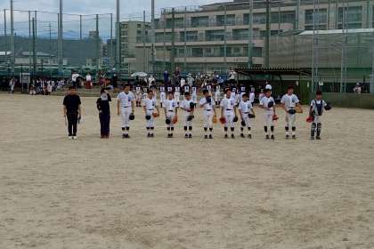殿田グランドで行われた大原野中学校との試合は10対7でなんとか死闘を制することができました。次もがんばってください。