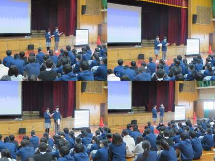 今週で2学期が終わります。2年では学期末の集会を、評議員のみなさんの運営で行いました。各クラスの総括やレクリエーション、評議員からの表彰が行われました。3学期からも「ACTIVE」「POSITIVE」「CREATIVE」で頑張りましょう!