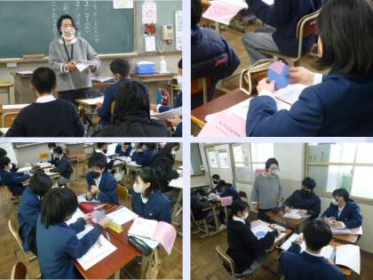 1年3組では、「落語が教えてくれること」という教科書と映像資料を使って、「相互理解」をテーマに考えてみました。
