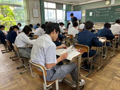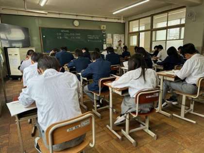 本日1・2限に3年生が国語・数学の全国学力・学習状況調査に取り組みました。難しい出題もありましたが、生徒たちは頑張って取り組んでいました。生徒質問調査(アンケート)は、今年度はGIGA端末を用いて実施します。本校は来週に実施日が指定されています。