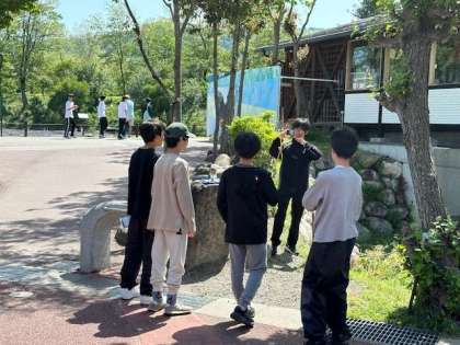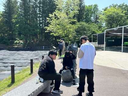 修学旅行団は大王わさび農園に到着しました。広大な農園の中、生徒たちは重い思いにゆっくり過ごしています。わさびソフトクリーム、美味しそうです。