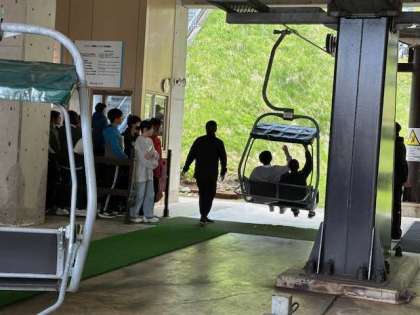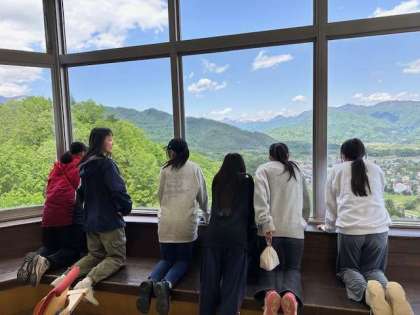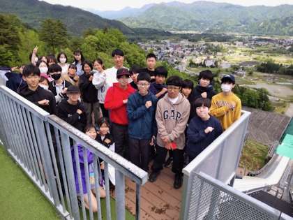 現在修学旅行団は白馬スキージャンプ場を訪れています。スケールの大きなジャンプ台にみんな興味深々です。
