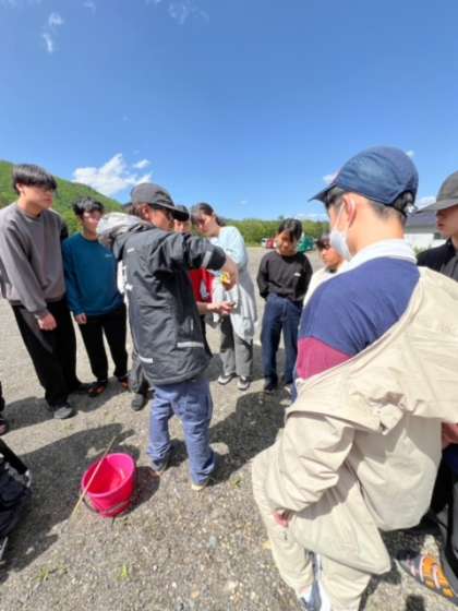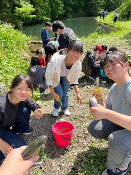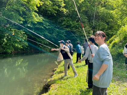 魚釣りを選択した生徒たちは、白馬47ゲレンデ付近で釣りにチャレンジしました。インストラクターの方からレクチャーを受け、ニジマス釣りに取り組みました。