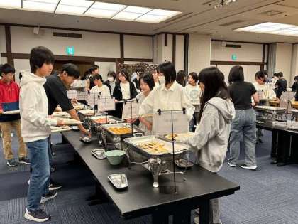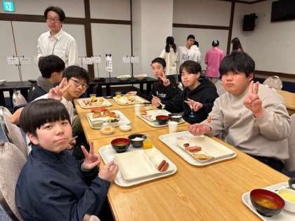 おはようございます。修学旅行も最終日を迎えました。昨日までの疲れで少ししんどそうな生徒もいますが、これまで大きな事故等なく行程を進めてきました。本日の天気は快晴です。現在朝食をとっています。
