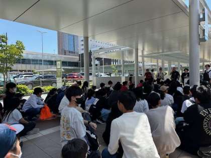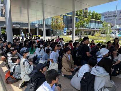 修学旅行団は先ほど金沢駅前に到着し、班別活動をスタートさせました。グループ別に金沢の各スポットをめぐりながら、途中昼食をとったりお土産を購入したりしながら、再度金沢駅前に集合します。