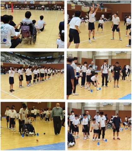ボッチャは烏丸中学校・上京中学校との合同チームで参加しました。ボールを転がす力加減が難しいのですが、生徒たちは的の中央めがけてうまくボールを転がしていました。中央付近に転がせたときには、学校を超えてみんなでハイタッチしている様子が印象的でした。