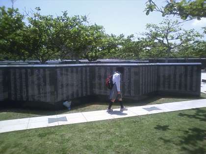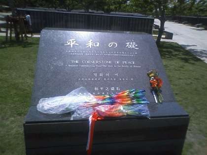 この沖縄の地で,改めて戦争の悲惨さを学び,石碑に刻まれた名をたどりました。熱い想いがこみ上げてきます。みんなで心を込めて折った「千羽鶴」を捧げました。