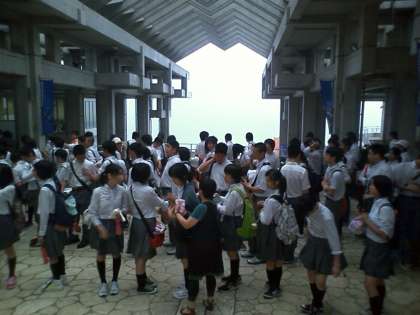 美ら海水族館に到着しました。みんな興味津々で,目が輝いています。