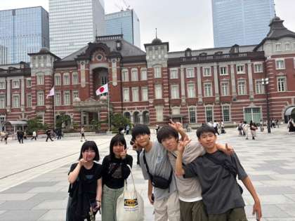 楽しかった判別研修も終わりに近づいています。生徒たちは集合場所の東京駅丸之内広場目指して移動中です。