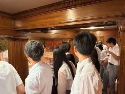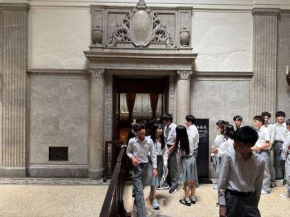 国会議事堂の見学を行いました。参議院議場と御休所を見学し、中央広間へと進みます。