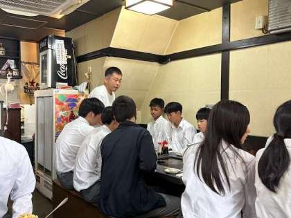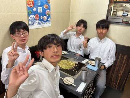 本日の昼食は、月島でのもんじゃ焼き体験でした。クラスごとに分かれて、もんじゃ焼きをおいしくいただきました。