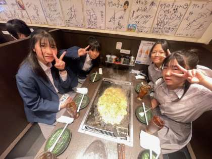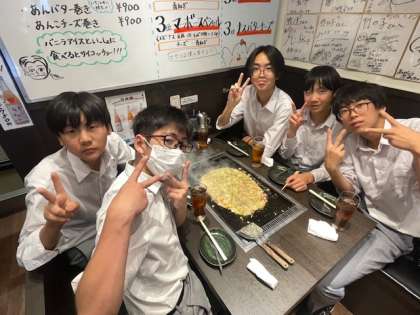 初めてもんじゃ焼き焼いて、食べた生徒も多かったようです。悪戦苦闘しながら、協力してもんじゃ焼きを焼いていました。