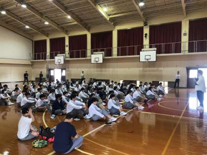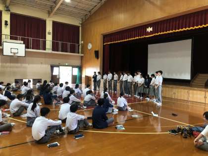 1時間目に学年集会を行い、実行委員の人たちから学年のみんなに話をしてくれました。