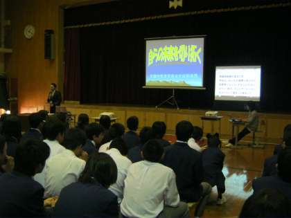 生徒たちは改めて自分や身の回りの生活を振りながら,真剣に聞き入っていました。