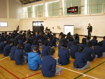 いよいよ、明日9日(土)から本格的に私立高校入試が始まります。各クラスで、入試に向けて進路指導を受けてきましたが、学年集会で前日の最終諸注意です。