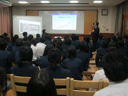 2月27日(水)5限に3年生は性教育の授業を行いました。この日は京都市教育委員会 体育健康教育室指導主事の大北康史先生に、「知ってください、大切なこと エイズ・性感染症・中絶について」というテーマで講演をして頂きました。