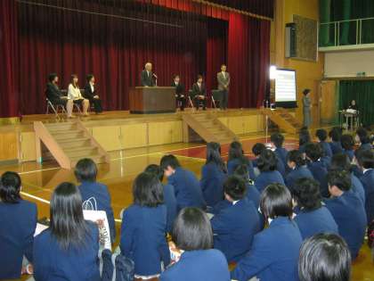 29日(金)9:30から離任式を行いました。在校生に加え、卒業生や保護者、地域の方々もたくさん参列していただきました。
