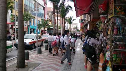 国際通りでお土産を買っています。 晴れてきました。