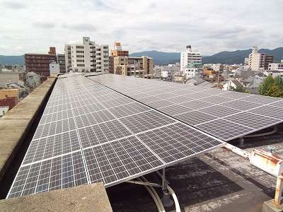 夏休みから工事を行い,このたび二条中学校屋上に太陽光パネルが設置されました。