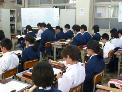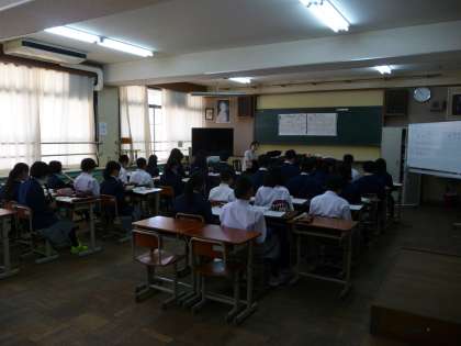 1年生の音楽の授業の様子です。初めてアルトリコーダーを使って,「喜びの歌」や「かっこう」などを,緊張しながら一生懸命吹いていました。また,アルトリコーダーの使い方や,しまい方も学習しました。しまうのもなかなか難しそうです。