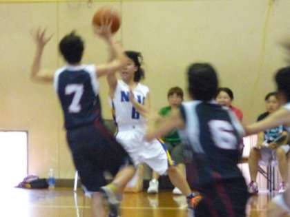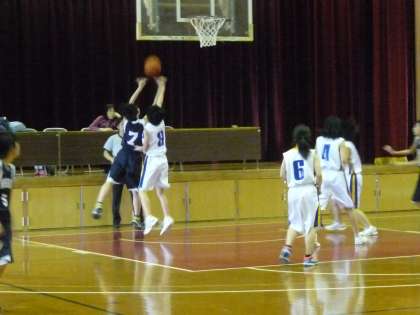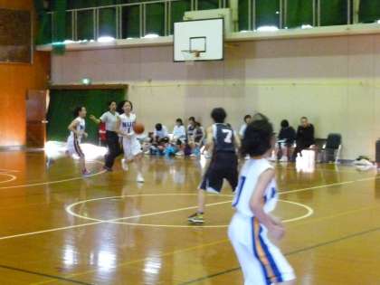 女子バスケットボール部は,二条中学校で行われた第1試合で,西賀茂中学校と対戦しました。相手チームのボールのパスまわしの速さと動きの素早さに,くらいついていく姿勢で頑張っていましたが,残念ながら負けてしまいました。3年生に混じって2年生もよく活躍していましたので,今後が楽しみです。