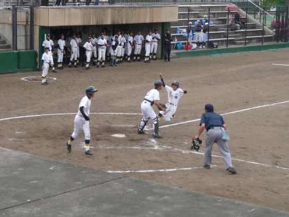 野球部は,岡崎球場にて,ベスト4入りをかけて準々決勝を行いました。