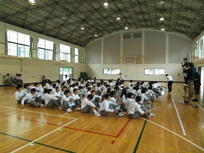 3年生は,5月22日(金)〜24日(日)で修学旅行に行きます。行き先は,沖縄です。各クラスで,事前研究をしたり,班や行程を相談したりと,計画的に準備を進めてきました。今日は,安全に素早く確実な行動ができるよう,団体行動の訓練をしました。
