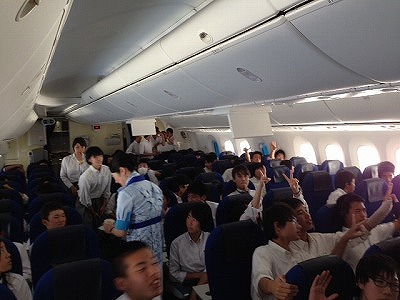 機内の様子です。みんな楽しそうで,沖縄への思いがだんだんと高まっていきます。