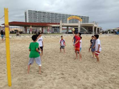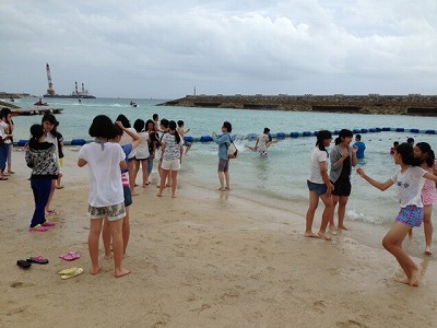お別れ式が終わり、海遊びを楽しんでいます。