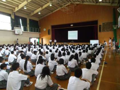 京都市教育委員会生徒指導課から講師の先生をお招きして,夏休みを目前に控え,注意するべき大切なお話を聴かせていただきました。